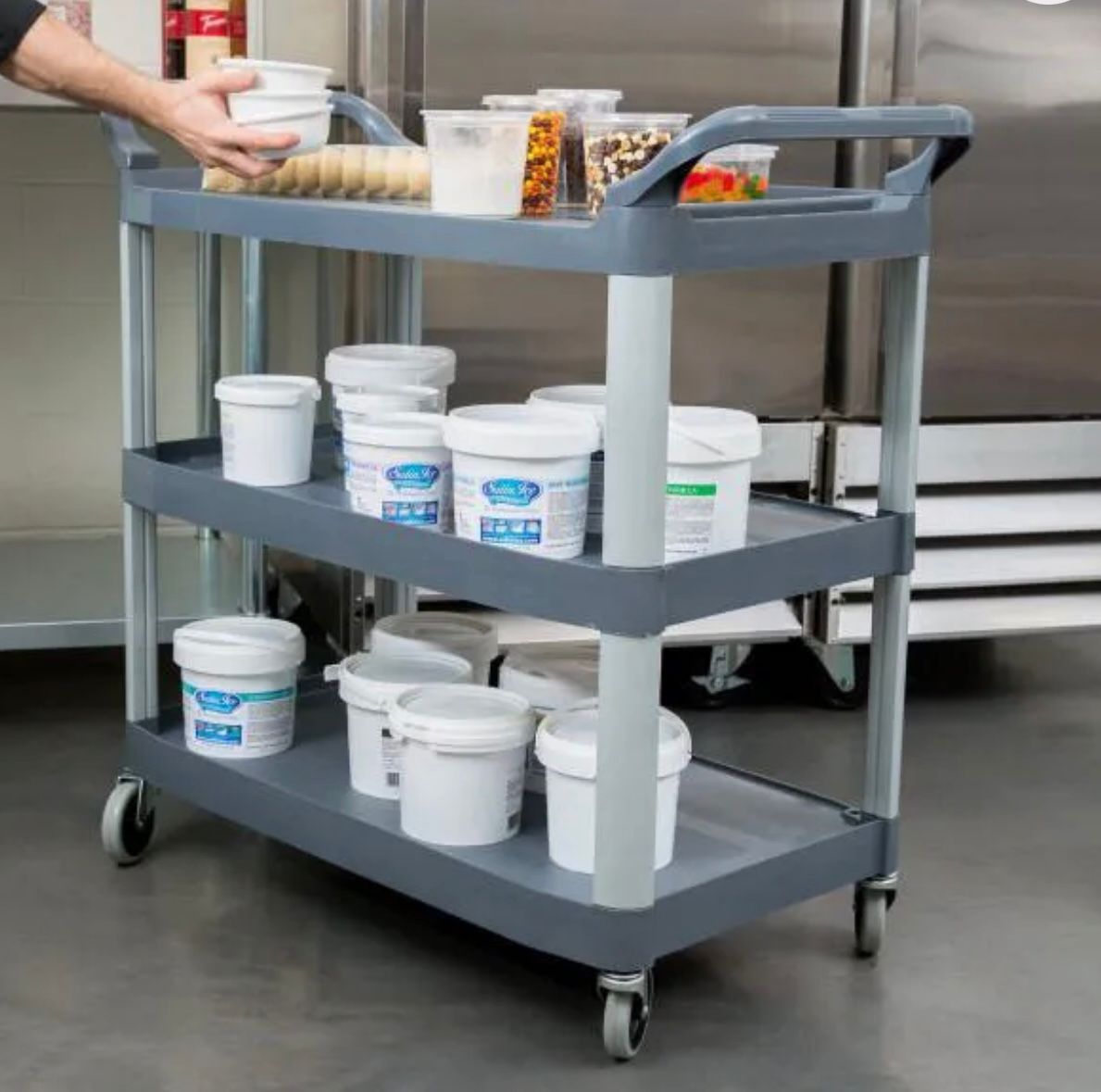 Com suas três prateleiras espaçosas, este carro multifuncional oferece praticidade e versatilidade para armazenar e transportar diversos itens.